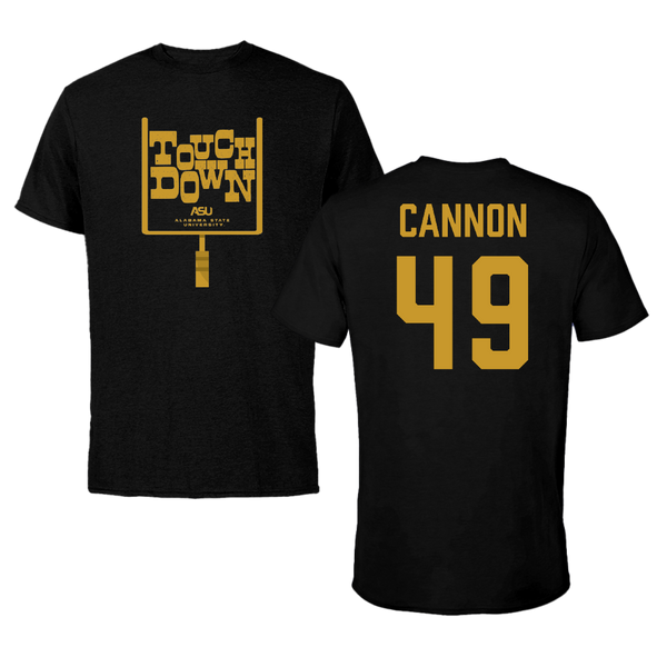 Alabama State University Football Black Touchdown Tee - #49 Baylor Cannon