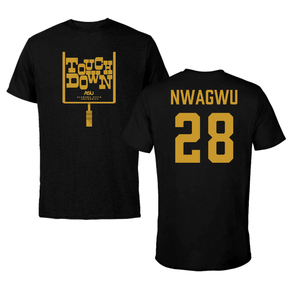 Alabama State University Football Black Touchdown Tee - #28 Nathan Nwagwu