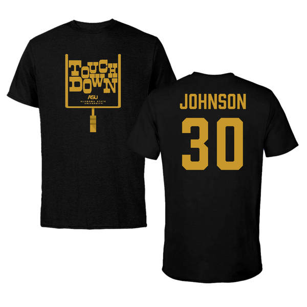 Alabama State University Football Black Touchdown Tee - #30 Ethan Johnson