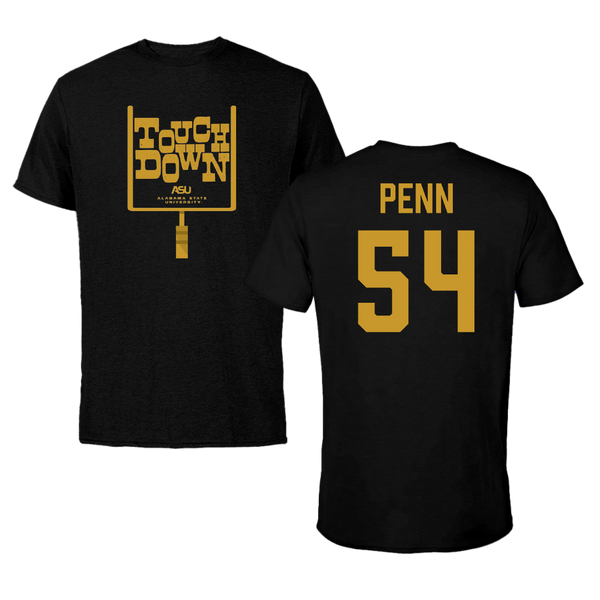 Alabama State University Football Black Touchdown Tee - #54 Dezmond Penn