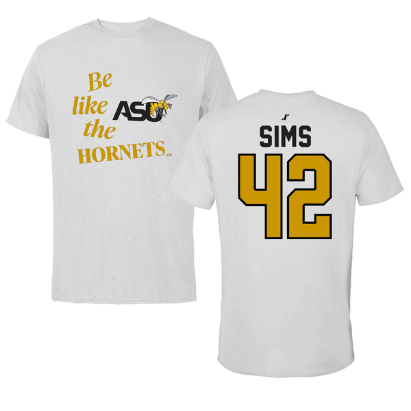 Alabama State University Football Light Gray Be Like Us Tee - #42 Tashaun Sims