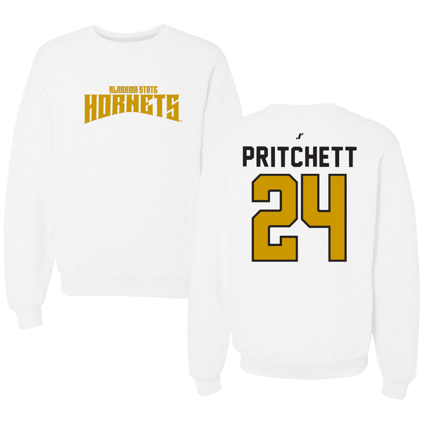 Alabama State University Soccer White Classic Crewneck - #24 Ania Pritchett