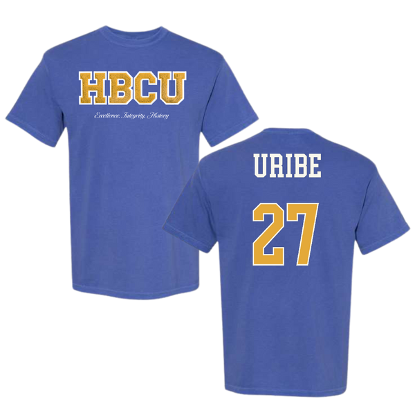 Albany State University Baseball Blue HBCU Varsity Comfort Colors Tee - #27 Mylon Uribe
