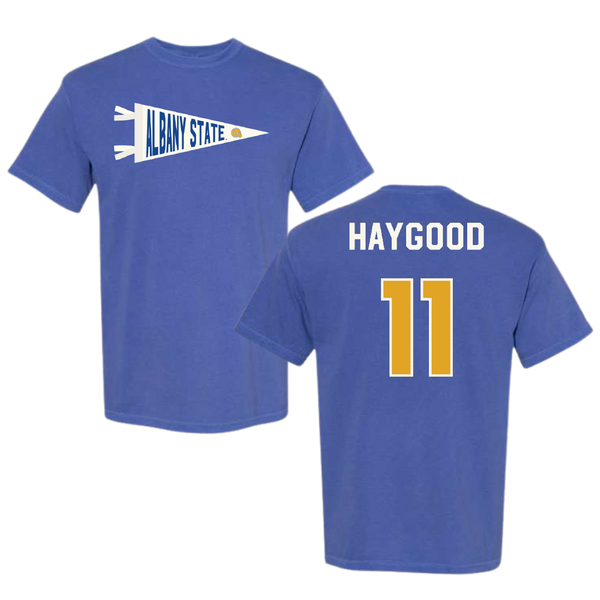Albany State University Baseball Blue Pennant Comfort Colors Tee - #11 Isaiah Haygood