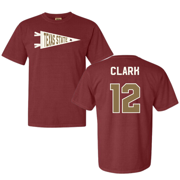 Texas State University Volleyball Maroon Pennant Comfort Colors Tee - #12 Alyssa Clark