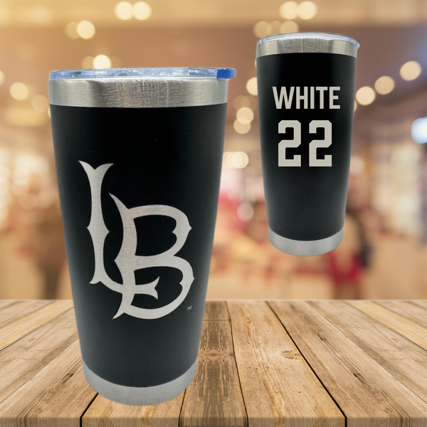 Long Beach State University Soccer (W) Black Stainless Steel Tumbler - #22 Ameera White