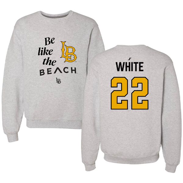 Long Beach State University Soccer (W) Light Gray Be Like Us Crewneck - #22 Ameera White