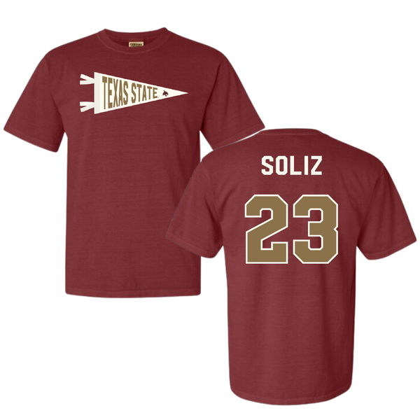 Texas State University Softball Maroon Pennant Comfort Colors Tee - #23 Analisa Soliz