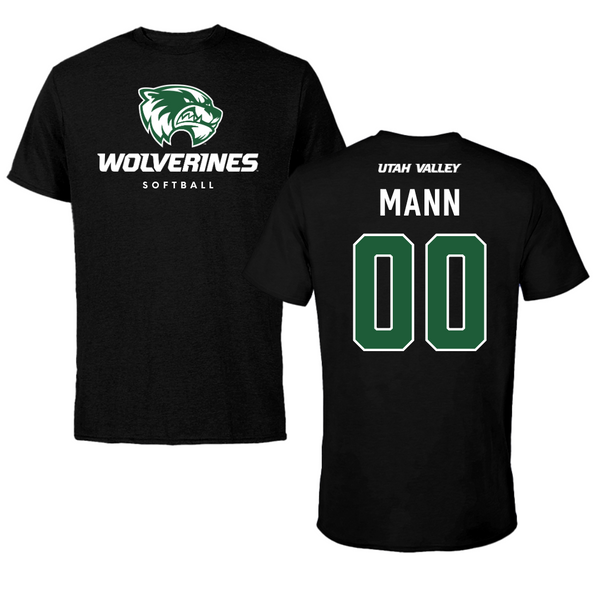 Utah Valley University Softball Black Wolverines Tee - #00 Angelique Mann