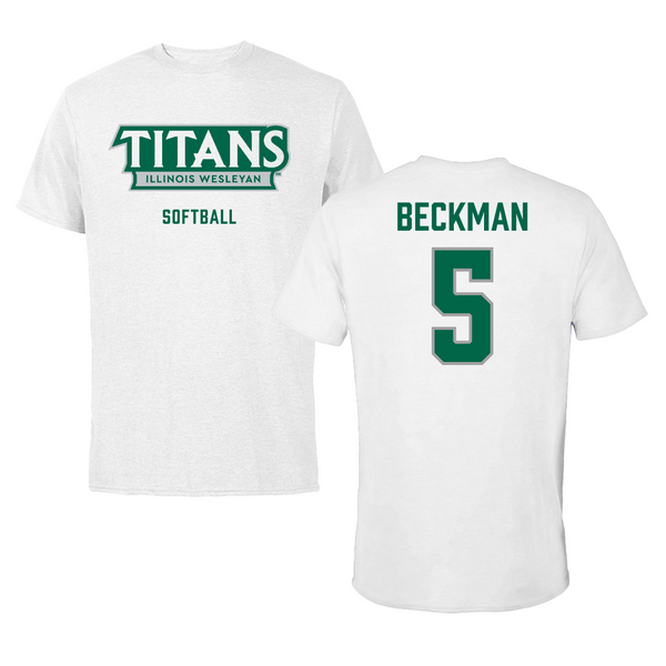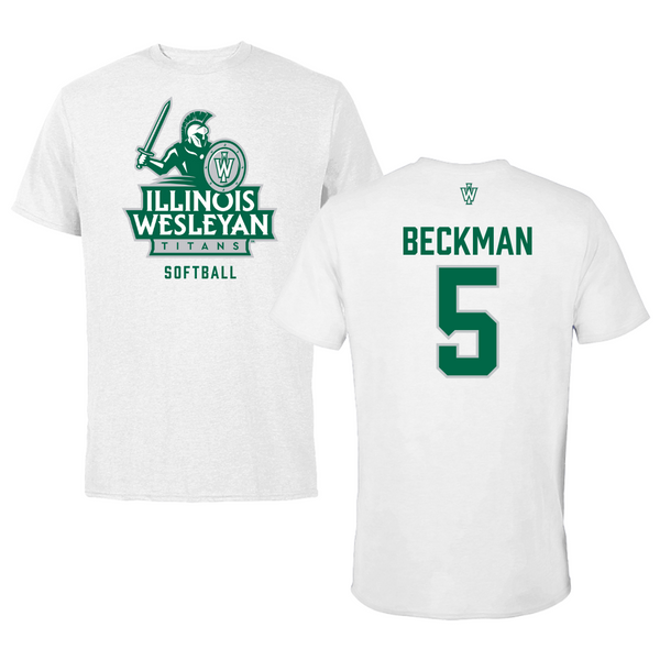 Illinois Wesleyan University Softball White Tee - #5 Anna Beckman
