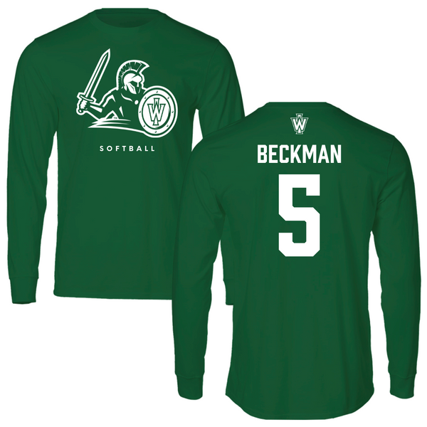 Illinois Wesleyan University Softball Kelly Green Long Sleeve - #5 Anna Beckman