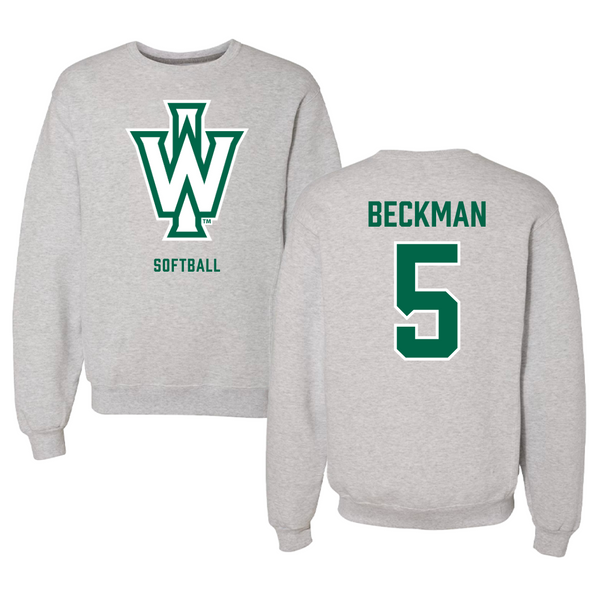 Illinois Wesleyan University Softball Gray Crewneck - #5 Anna Beckman