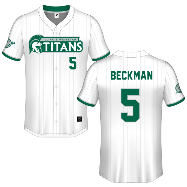 Illinois Wesleyan University White Pinstripe Button-Down Jersey - #5 Anna Beckman
