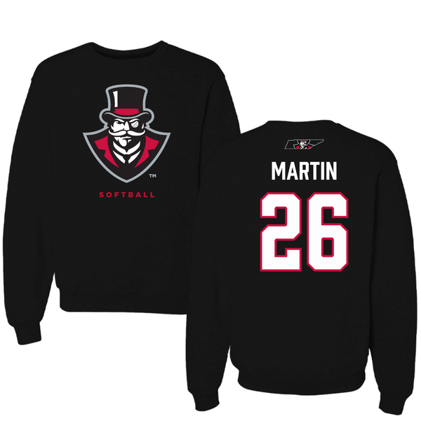 Austin Peay State University Softball Black Mascot Crewneck - #26 Ashley Martin