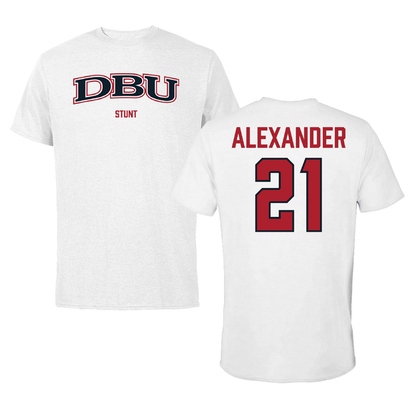 Dallas Baptist University STUNT White Tee - #21 Avery Alexander