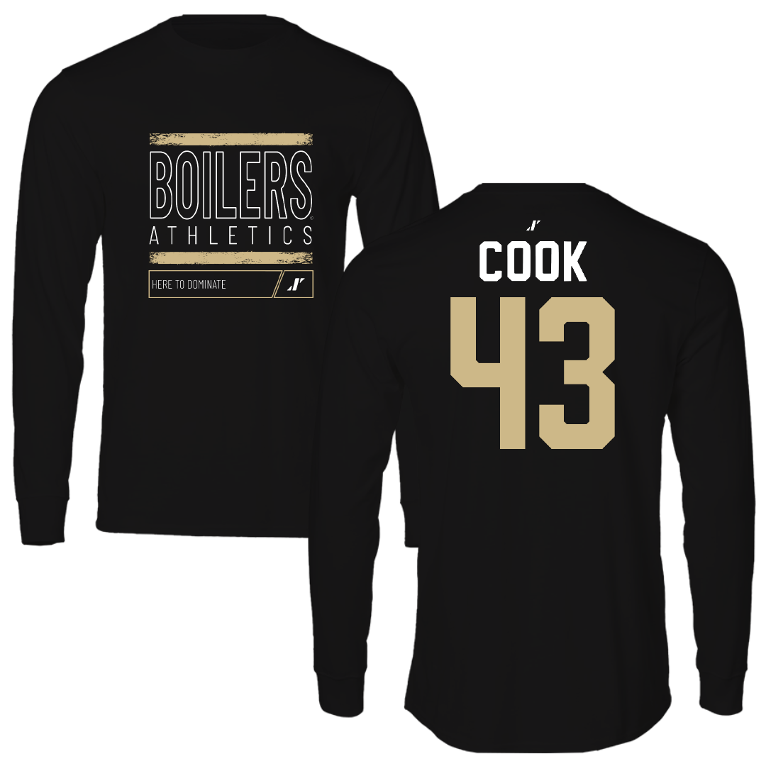 Purdue University Baseball Black Dominate Performance Long Sleeve - #43 Avery Cook