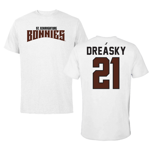 St. Bonaventure University Soccer White Tee - #21 Avery Dreasky