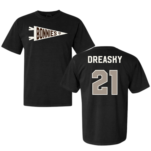 St. Bonaventure University Soccer Black Pennant Comfort Colors Tee - #21 Avery Dreasky