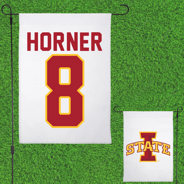 Iowa State University Soccer White Garden Flag - #8 Avery Horner