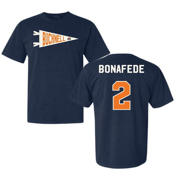 Bucknell University Lacrosse Navy Pennant Comfort Colors Tee - #2 Benjamin Bonafede