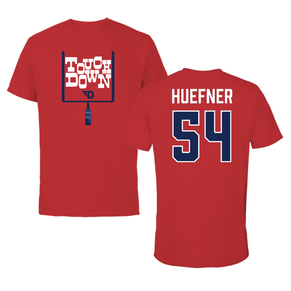 University of Dayton Football Red Touchdown Tee - #54 Ben Huefner