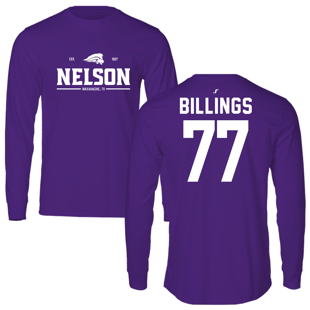 Nelson University Football Purple General Performance Long Sleeve - #77 Benjamin Billings