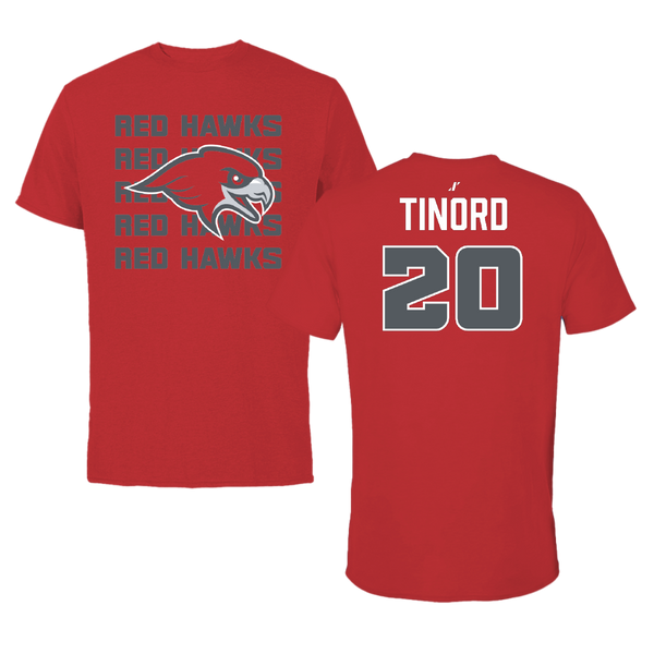 Montclair State University Football Red Tee - #20 Bernie Tinord