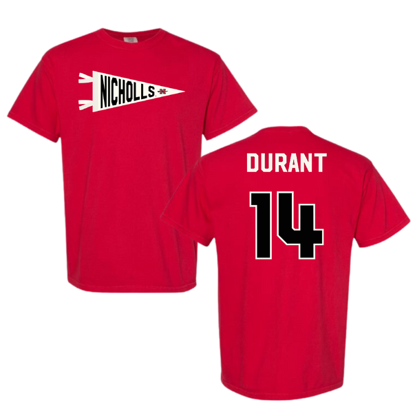 Nicholls State University Beach Volleyball Red Pennant Comfort Colors Tee - #14 Bethanie Durant