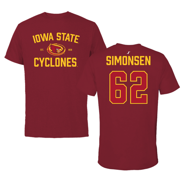 Iowa State University Football Cardinal Tee - #62 Braden Simonsen