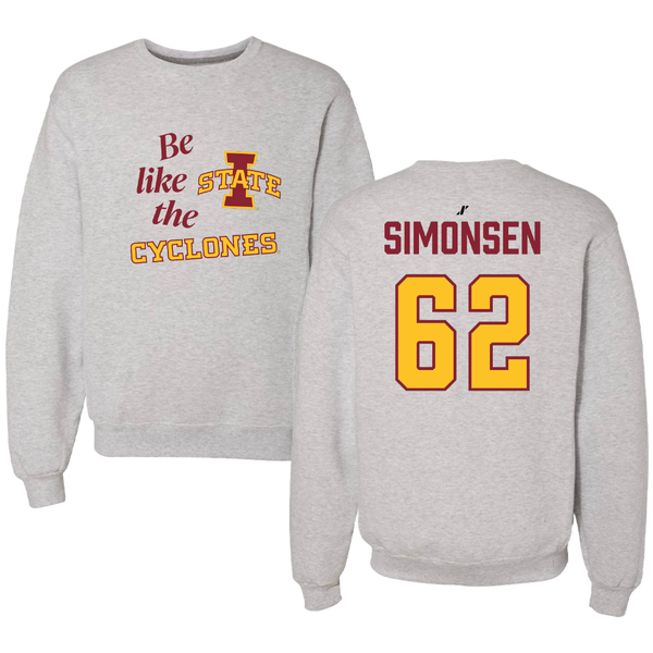 Iowa State University Football Light Gray Be Like Us Crewneck - #62 Braden Simonsen