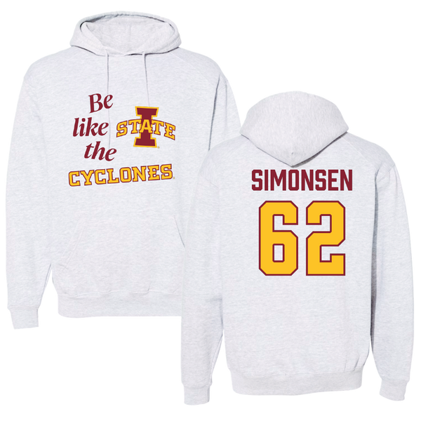 Iowa State University Football Light Gray Be Like Us Hoodie - #62 Braden Simonsen