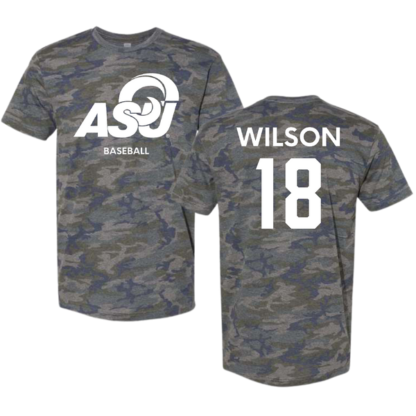 Angelo State University Baseball Vintage Camo Tee - #18 Braden Wilson
