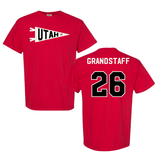 University of Utah Lacrosse Red Pennant Comfort Colors Tee - #26 Brady Grandstaff