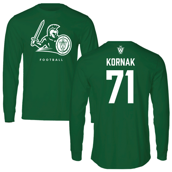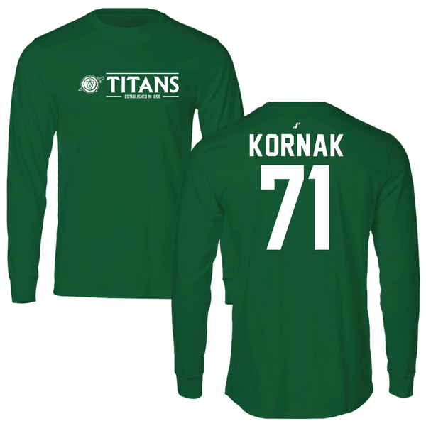 Illinois Wesleyan University Football Green General Long Sleeve - #71 Brady Kornak