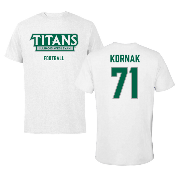 Illinois Wesleyan University Football White Tee - #71 Brady Kornak