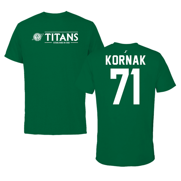 Illinois Wesleyan University Football Green Tee - #71 Brady Kornak
