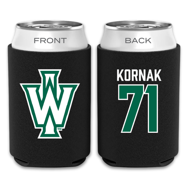 Illinois Wesleyan University Football Black Can Cooler - #71 Brady Kornak