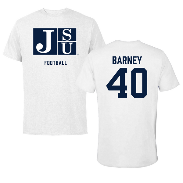 Jackson State University Football White Performance Tee - #40 Braxton Barney