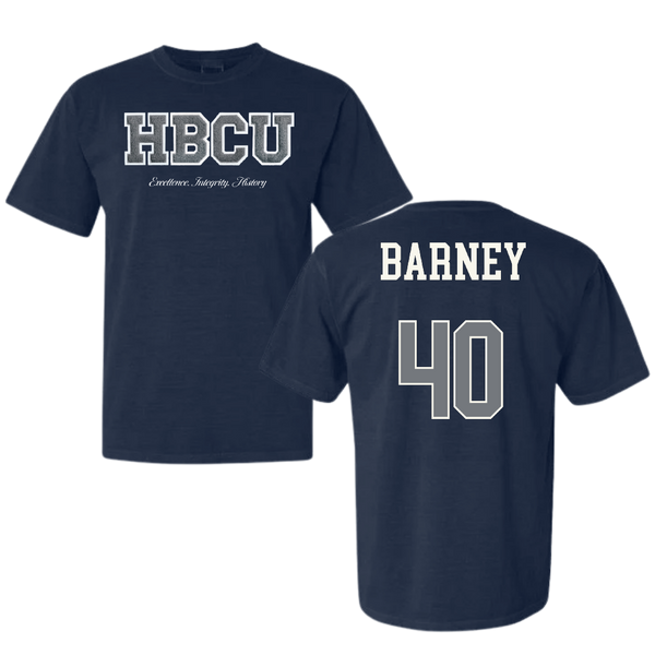 Jackson State University Football Navy HBCU Varsity Comfort Colors Tee - #40 Braxton Barney