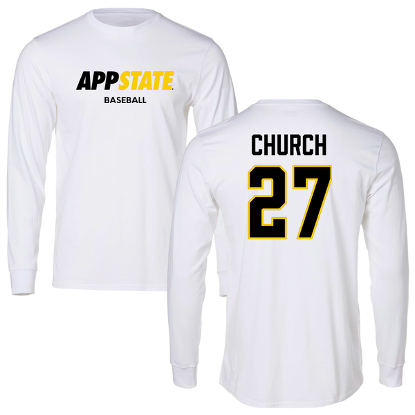 Appalachian State University Baseball White Block Long Sleeve - #27 Braxton Church