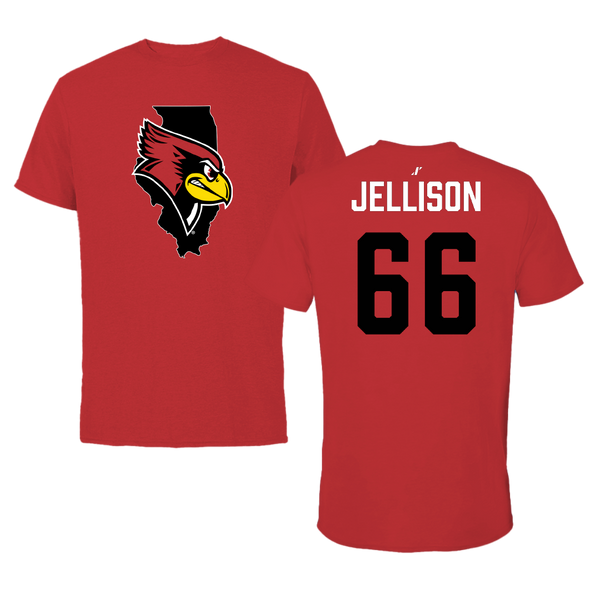 Illinois State University Football Red State Tee - #66 Brayden Jellison