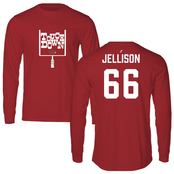 Illinois State University Football Canvas Red Touchdown Long Sleeve - #66 Brayden Jellison