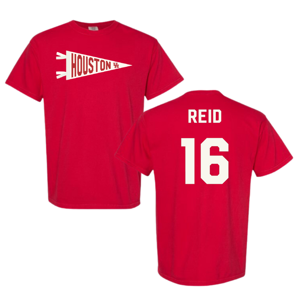 University of Houston Volleyball Red Pennant Comfort Colors Tee - #16 Brenya Reid
