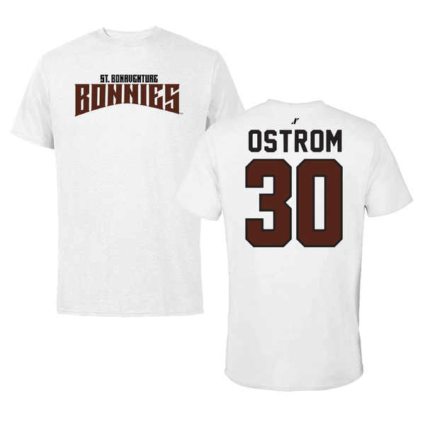 St. Bonaventure University Basketball White Classic Tee - #30 Broek Ostrom