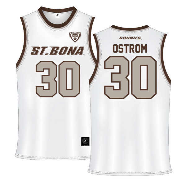 St. Bonaventure University White Basketball Jersey - #30 Broek Ostrom