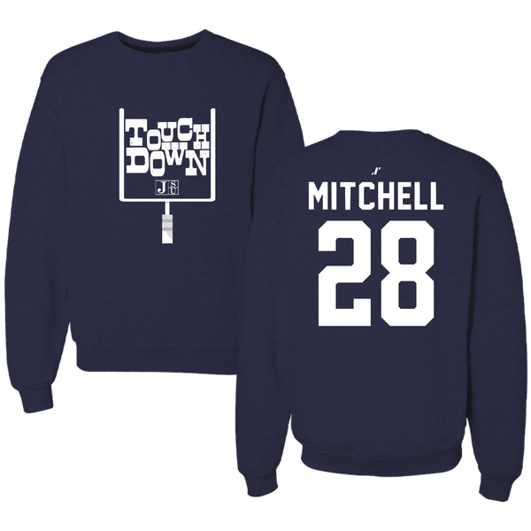 Jackson State University Football Navy Touchdown Crewneck - #28 Bruce Mitchell