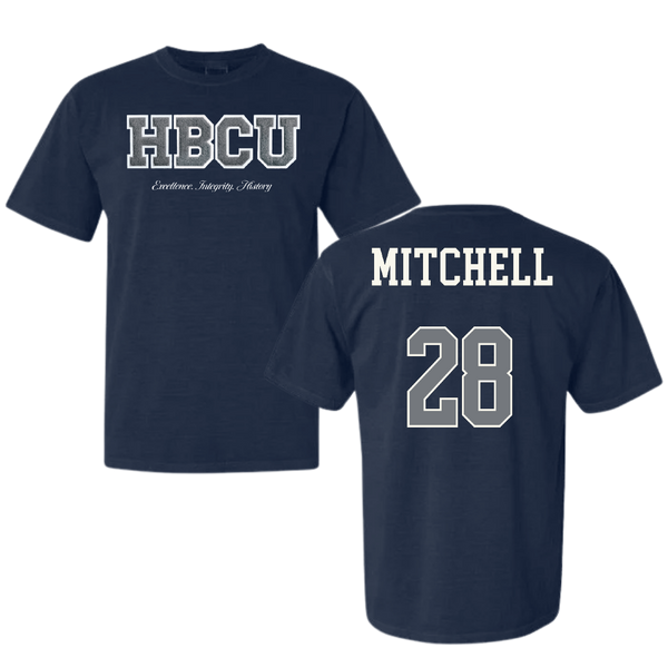 Jackson State University Football Navy HBCU Varsity Comfort Colors Tee - #28 Bruce Mitchell