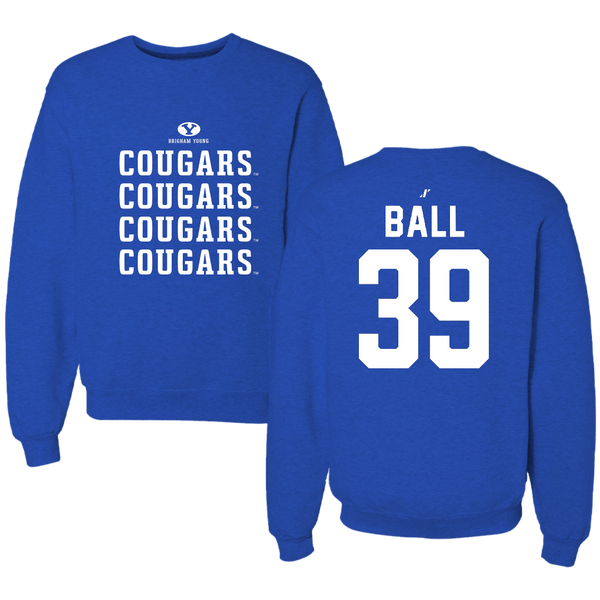 Brigham Young University Baseball Blue General Crewneck - #39 Nicholas Ball