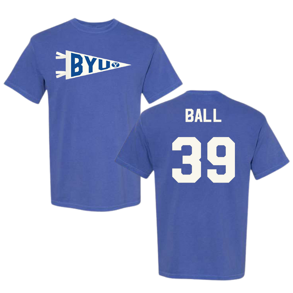 Brigham Young University Baseball Blue Pennant Comfort Colors Tee - #39 Nicholas Ball