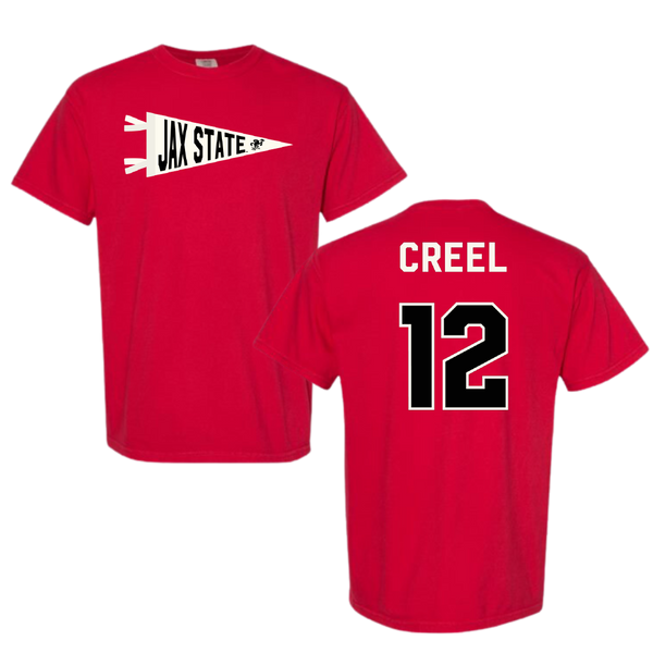 Jacksonville State University Football Red Pennant Comfort Colors Tee - #12 Caden Creel